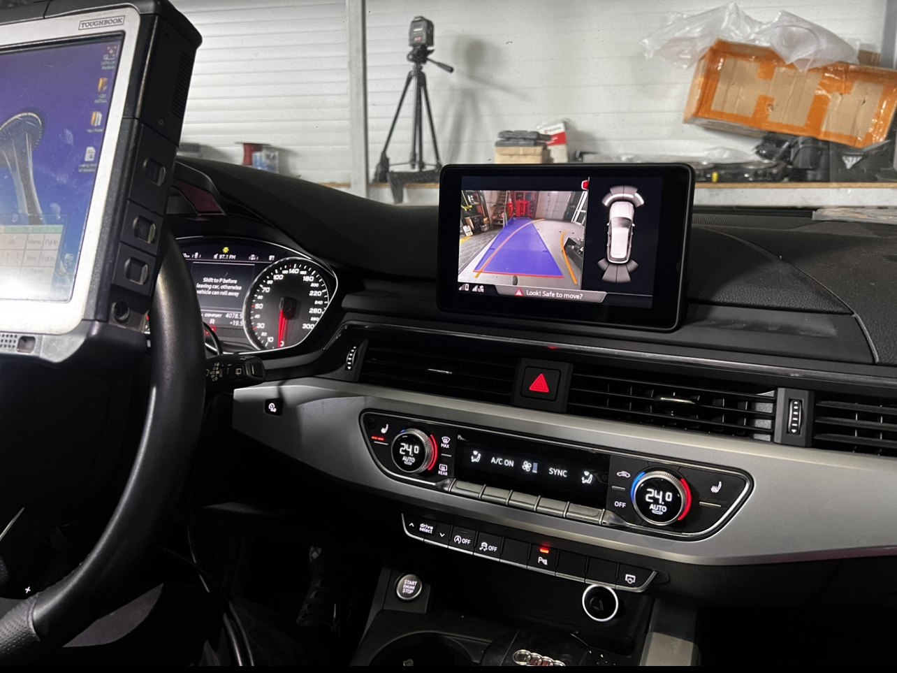 Oferim serviciul de Retrofit (Montare-Cablare-Codare) Camera Marsarier pentru Audi A4 B9 2017-2021 pe sistemul multimedia MIB original al mașinii!